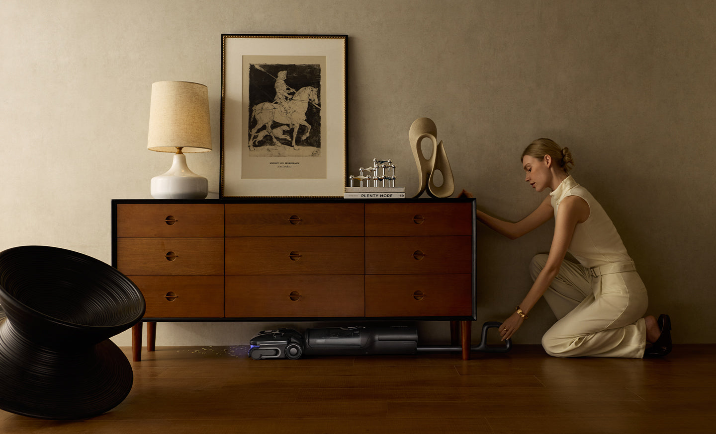 Įveikia ankštas erdves su plonu 12,5 cm plokščiu dizainu, kuris palaiko visapusišką siurbimą 180°. Itin žemas įrenginio profilis pasiekia kiekvieną kampą ir nepalieka dulkių.